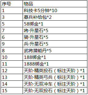 l 活动期间,开放一流、传奇、无双士兵碎片兑换;开放指定激活天地人兵法属性道具兑换。